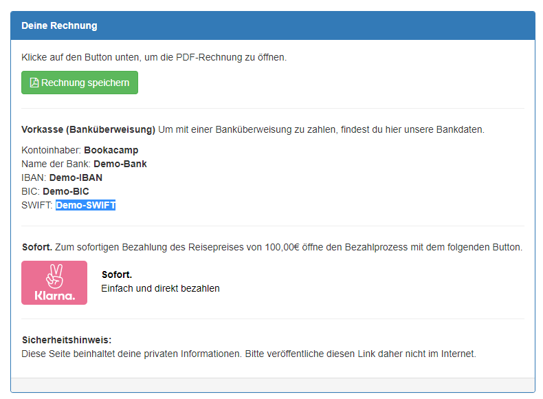 Ist das Ticket bezahlt und einem Checkin steht nichts im Wege, sieht diese Info so aus: